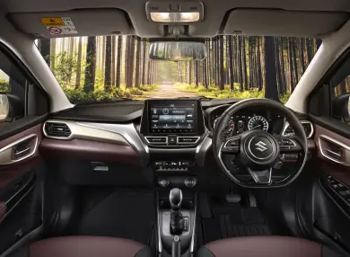 Suzuki Fronx dirancang dengan kabin yang memadukan kenyamanan dan kesan premium. Interior mobil ini mengusung kombinasi warna hitam dan bordeaux atau merah anggur, memberikan nuansa elegan sekaligus sporty.